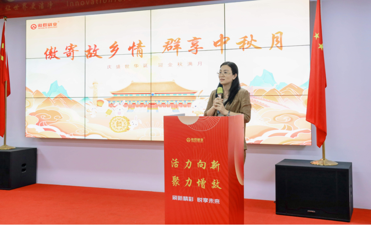 During the Mid-Autumn Festival, Liu Xuezhen, Founder and General Manager of AOQUN Brush Industry, extended sincere wishes to all employees and their families. She expressed gratitude for everyone’s dedication and contributions in their respective roles. Despite this year’s market challenges, she noted, the AOQUN team demonstrated remarkable resilience. It is through united efforts that the company achieved impressive order growth against the odds, making the team’s cohesion shine even brighter.
